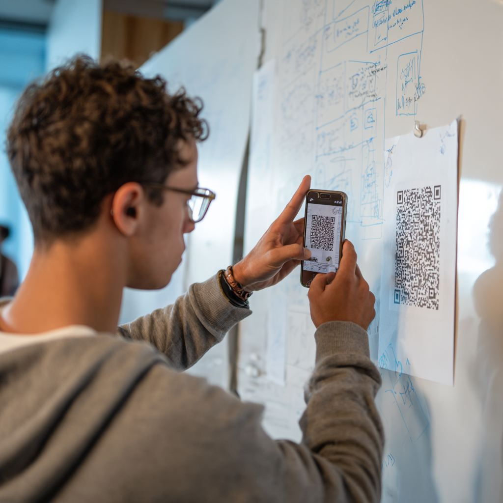 Imagine the following: Your participants enter the room. On each whiteboard and in your presentation they find a QR code.